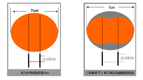双刀并用技术:对于较大的肿瘤提供双刀并用技术,扩大肿瘤一次原位毁损范围。